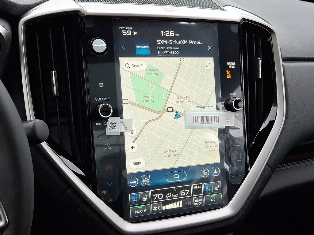14 Speakers, 3rd row seats: bench, 4-Wheel Disc Brakes, ABS brakes, Air Conditioning, Alloy wheels, AM/FM radio: SiriusXM with 360L, Apple CarPlay & Android Auto, Auto High-beam Headlights, Auto-dimming Rear-View mirror, Automatic temperature control, Brake assist, Bumpers: body-color, Compass, Delay-off headlights, Driver door bin, Driver vanity mirror, Dual front impact airbags, Dual front side impact airbags, Electronic Stability Control, Emergency communication system: MySubaru Safety (3-year free trial), Exterior Parking Camera Rear, Four wheel independent suspension, Front anti-roll bar, Front Bucket Seats, Front Center Armrest, Front dual zone A/C, Front fog lights, Front reading lights, Fully automatic headlights, Garage door transmitter: HomeLink, harman/kardon® Speakers, Heated & Ventilated Front Bucket Seats, Heated door mirrors, Heated front seats, Heated rear seats, Heated steering wheel, HVAC memory, Illuminated entry, Knee airbag, Leather Shift Knob, Leather steering wheel, Low tire pressure warning, Memory seat, Navigation System, Occupant sensing airbag, Outside temperature display, Overhead airbag, Overhead console, Panic alarm, Passenger door bin, Passenger vanity mirror, Perforated Nappa Leather-Trimmed Upholstery, Power door mirrors, Power driver seat, Power Liftgate, Power moonroof, Power passenger seat, Power steering, Power windows, Radio data system, Radio: Subaru 11.6" Multimedia System w/Navigation, Rain sensing wipers, Rear air conditioning, Rear anti-roll bar, Rear reading lights, Rear window defroster, Rear window wiper, Reclining 3rd row seat, Remote keyless entry, Security system, Speed control, Speed-sensing steering, Split folding rear seat, Spoiler, Steering wheel mounted audio controls, Tachometer, Telescoping steering wheel, Tilt steering wheel, Traction control, Trip computer, Turn signal indicator mirrors, Variably intermittent wipers, Ventilated front seats, Wheels: 20" x 7.5 J Dk Gray Alloy w/Machine Finish.