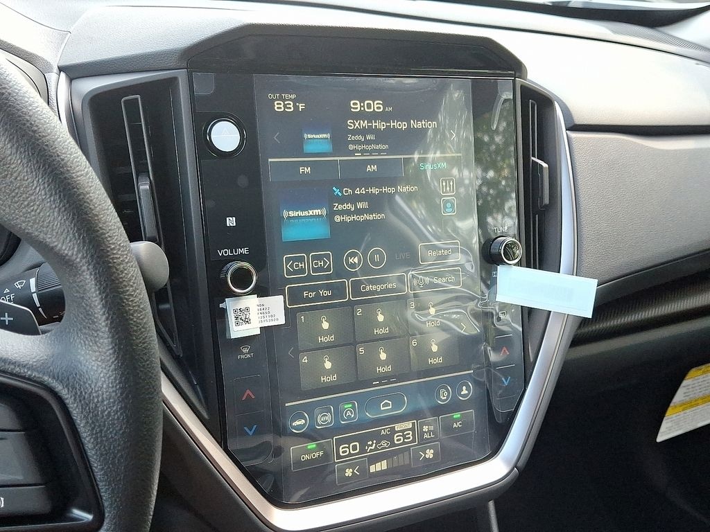 4-Wheel Disc Brakes, 6 Speakers, ABS brakes, Air Conditioning, Alloy wheels, AM/FM radio: SiriusXM, Anti-whiplash front head restraints, Auto High-beam Headlights, Automatic temperature control, Brake assist, Bumpers: body-color, Cloth Upholstery, Driver door bin, Driver vanity mirror, Dual front impact airbags, Dual front side impact airbags, Electronic Stability Control, Emergency communication system, Exterior Parking Camera Rear, Four wheel independent suspension, Front anti-roll bar, Front Bucket Seats, Front Center Armrest, Front dual zone A/C, Front fog lights, Front reading lights, Fully automatic headlights, Illuminated entry, Knee airbag, Low tire pressure warning, Occupant sensing airbag, Outside temperature display, Overhead airbag, Overhead console, Panic alarm, Passenger door bin, Passenger vanity mirror, Power door mirrors, Power steering, Power windows, Radio data system, Radio: Subaru 11.6" Multimedia Plus System, Rear anti-roll bar, Rear seat center armrest, Rear window defroster, Rear window wiper, Remote keyless entry, Security system, Speed control, Speed-sensing steering, Split folding rear seat, Spoiler, Steering wheel mounted audio controls, Tachometer, Telescoping steering wheel, Tilt steering wheel, Traction control, Trip computer, Turn signal indicator mirrors, Variably intermittent wipers, Wheels: 17" x 7.0" J Machine Finish Aluminum-Alloy.