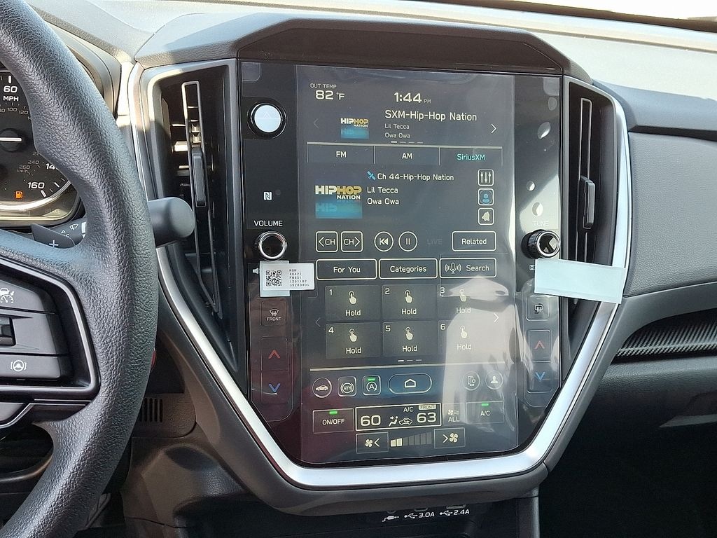 4-Wheel Disc Brakes, 6 Speakers, ABS brakes, Air Conditioning, Alloy wheels, AM/FM radio: SiriusXM, Anti-whiplash front head restraints, Auto High-beam Headlights, Automatic temperature control, Brake assist, Bumpers: body-color, Cloth Upholstery, Driver door bin, Driver vanity mirror, Dual front impact airbags, Dual front side impact airbags, Electronic Stability Control, Emergency communication system, Exterior Parking Camera Rear, Four wheel independent suspension, Front anti-roll bar, Front Bucket Seats, Front Center Armrest, Front dual zone A/C, Front fog lights, Front reading lights, Fully automatic headlights, Illuminated entry, Knee airbag, Low tire pressure warning, Occupant sensing airbag, Outside temperature display, Overhead airbag, Overhead console, Panic alarm, Passenger door bin, Passenger vanity mirror, Power door mirrors, Power steering, Power windows, Radio data system, Radio: Subaru 11.6" Multimedia Plus System, Rear anti-roll bar, Rear seat center armrest, Rear window defroster, Rear window wiper, Remote keyless entry, Security system, Speed control, Speed-sensing steering, Split folding rear seat, Spoiler, Steering wheel mounted audio controls, Tachometer, Telescoping steering wheel, Tilt steering wheel, Traction control, Trip computer, Turn signal indicator mirrors, Variably intermittent wipers, Wheels: 17" x 7.0" J Machine Finish Aluminum-Alloy.
