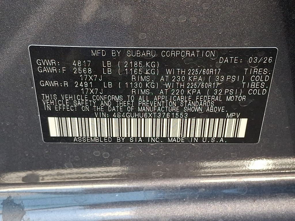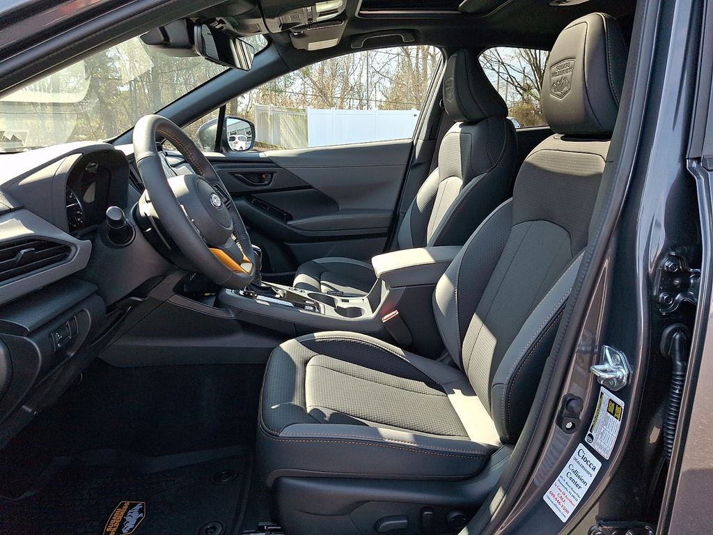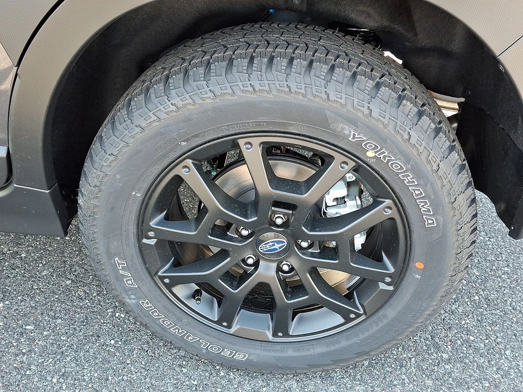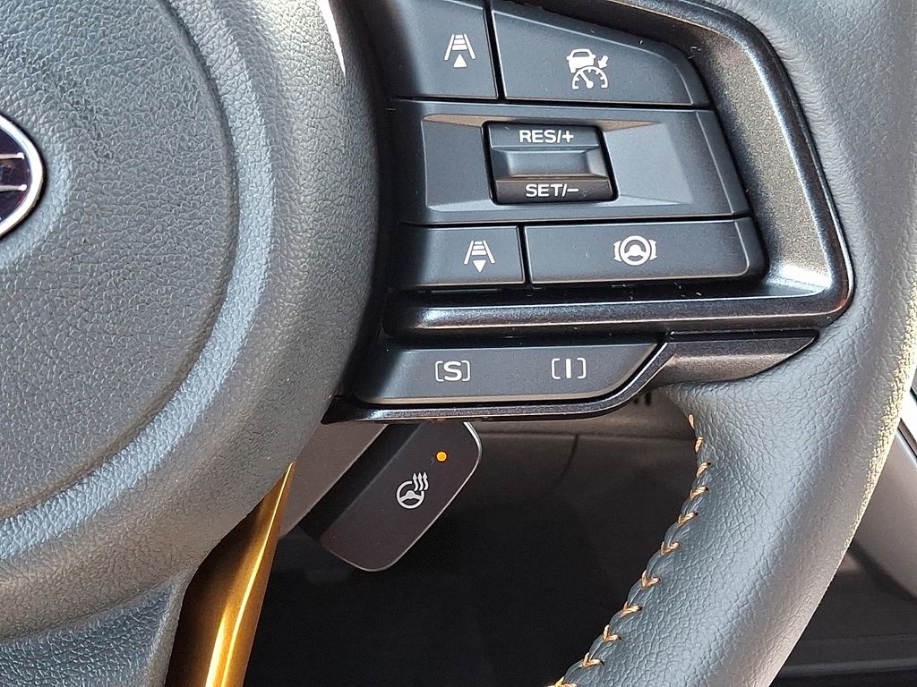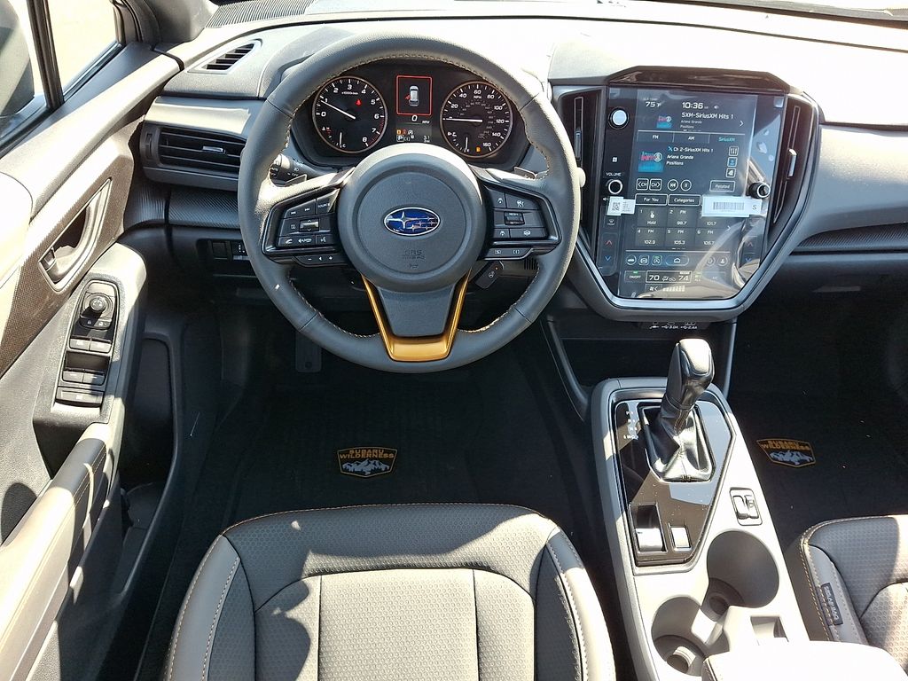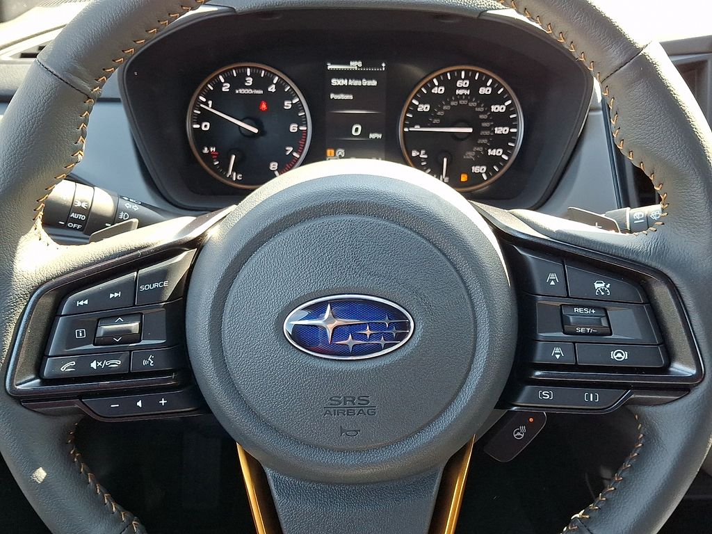 4-Wheel Disc Brakes, 6 Speakers, ABS brakes, Air Conditioning, Alloy wheels, AM/FM radio: SiriusXM with 360L, Anti-whiplash front head restraints, Auto High-beam Headlights, Automatic temperature control, Brake assist, Bumpers: body-color, Driver door bin, Driver vanity mirror, Dual front impact airbags, Dual front side impact airbags, Electronic Stability Control, Emergency communication system: MySubaru Companion (5-years free), Exterior Parking Camera Rear, Four wheel independent suspension, Front anti-roll bar, Front Bucket Seats, Front Center Armrest, Front dual zone A/C, Front fog lights, Front reading lights, Fully automatic headlights, Heated door mirrors, Heated Front Bucket Seats, Heated front seats, Heated steering wheel, Illuminated entry, Knee airbag, Leather Shift Knob, Leather steering wheel, Low tire pressure warning, Occupant sensing airbag, Outside temperature display, Overhead airbag, Overhead console, Panic alarm, Passenger door bin, Passenger vanity mirror, Power door mirrors, Power steering, Power windows, Radio data system, Radio: Subaru 11.6" Multimedia Plus System, Rear anti-roll bar, Rear seat center armrest, Rear side impact airbag, Rear window defroster, Rear window wiper, Remote keyless entry, Security system, Speed control, Speed-sensing steering, Split folding rear seat, Spoiler, Steering wheel mounted audio controls, Tachometer, Telescoping steering wheel, Tilt steering wheel, Traction control, Trip computer, Turn signal indicator mirrors, Variably intermittent wipers, Wheels: 17" x 7.0" J Matte Black Aluminum-Alloy, Wilderness StarTex Upholstery.