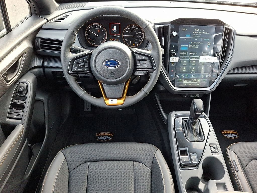 4-Wheel Disc Brakes, 6 Speakers, ABS brakes, Air Conditioning, Alloy wheels, AM/FM radio: SiriusXM, Anti-whiplash front head restraints, Auto High-beam Headlights, Automatic temperature control, Brake assist, Bumpers: body-color, Driver door bin, Driver vanity mirror, Dual front impact airbags, Dual front side impact airbags, Electronic Stability Control, Emergency communication system: MySubaru Companion (5-years free), Exterior Parking Camera Rear, Four wheel independent suspension, Front anti-roll bar, Front Bucket Seats, Front Center Armrest, Front dual zone A/C, Front fog lights, Front reading lights, Fully automatic headlights, Heated door mirrors, Heated Front Bucket Seats, Heated front seats, Heated steering wheel, Illuminated entry, Knee airbag, Leather Shift Knob, Leather steering wheel, Low tire pressure warning, Occupant sensing airbag, Outside temperature display, Overhead airbag, Overhead console, Panic alarm, Passenger door bin, Passenger vanity mirror, Power door mirrors, Power steering, Power windows, Radio data system, Radio: Subaru 11.6" Multimedia Plus System, Rear anti-roll bar, Rear seat center armrest, Rear side impact airbag, Rear window defroster, Rear window wiper, Remote keyless entry, Security system, Speed control, Speed-sensing steering, Split folding rear seat, Spoiler, Steering wheel mounted audio controls, Tachometer, Telescoping steering wheel, Tilt steering wheel, Traction control, Trip computer, Turn signal indicator mirrors, Variably intermittent wipers, Wheels: 17" x 7.0" J Matte Black Aluminum-Alloy, Wilderness StarTex Upholstery.