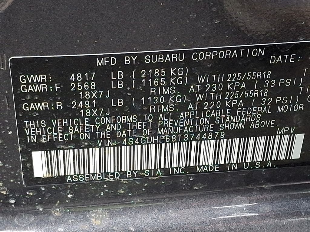 4-Wheel Disc Brakes, 6 Speakers, ABS brakes, Air Conditioning, Alloy wheels, AM/FM radio: SiriusXM with 360L, Anti-whiplash front head restraints, Auto High-beam Headlights, Automatic temperature control, Brake assist, Bumpers: body-color, Driver door bin, Driver vanity mirror, Dual front impact airbags, Dual front side impact airbags, Electronic Stability Control, Emergency communication system: MySubaru Companion (5-years free), Exterior Parking Camera Rear, Four wheel independent suspension, Front anti-roll bar, Front Bucket Seats, Front Center Armrest, Front dual zone A/C, Front fog lights, Front reading lights, Fully automatic headlights, Heated door mirrors, Heated Front Bucket Seats, Heated front seats, Heated steering wheel, Illuminated entry, Knee airbag, Leather Shift Knob, Leather steering wheel, Leather-Trimmed Upholstery, Low tire pressure warning, Occupant sensing airbag, Outside temperature display, Overhead airbag, Overhead console, Panic alarm, Passenger door bin, Passenger vanity mirror, Power door mirrors, Power driver seat, Power steering, Power windows, Radio data system, Radio: Subaru 11.6" Multimedia Plus System, Rear anti-roll bar, Rear seat center armrest, Rear side impact airbag, Rear window defroster, Rear window wiper, Remote keyless entry, Security system, Speed control, Speed-sensing steering, Split folding rear seat, Spoiler, Steering wheel mounted audio controls, Tachometer, Telescoping steering wheel, Tilt steering wheel, Traction control, Trip computer, Turn signal indicator mirrors, Variably intermittent wipers, Wheels: 18" x 7.0" J Machine Finish Aluminum-Alloy.