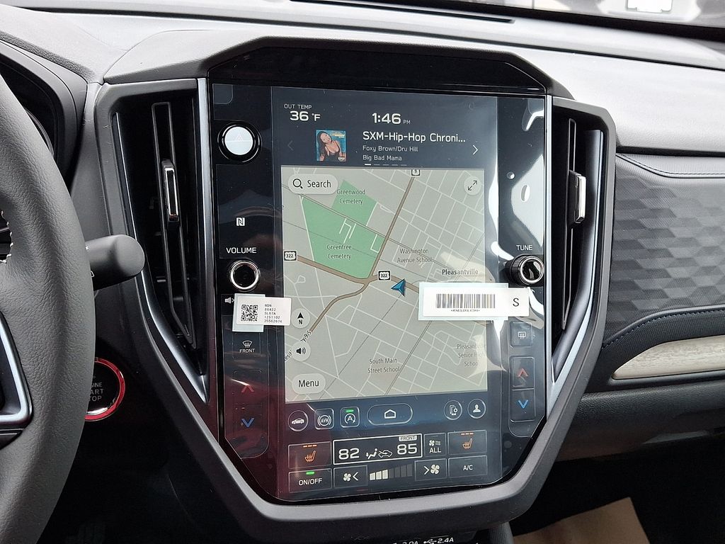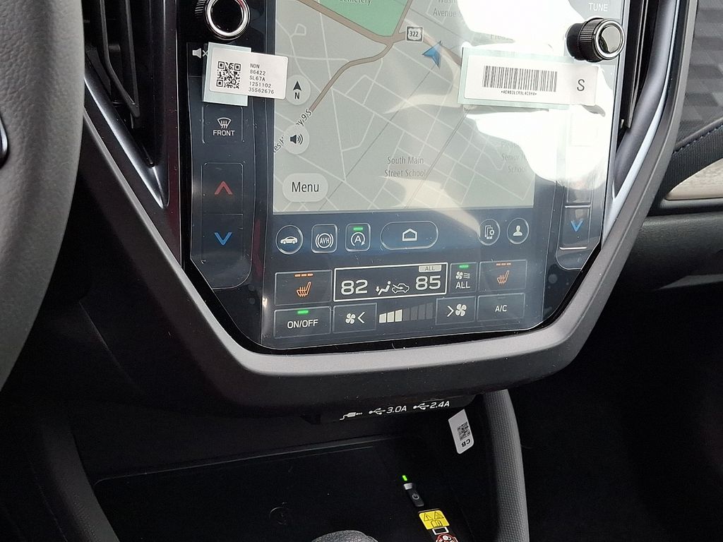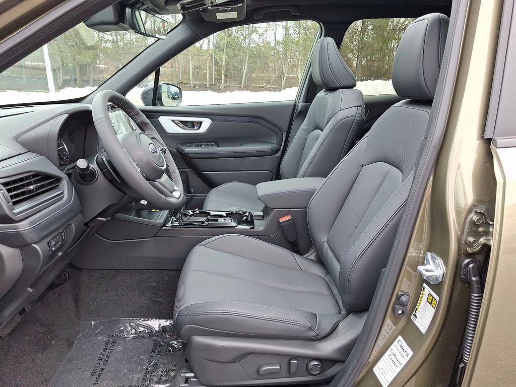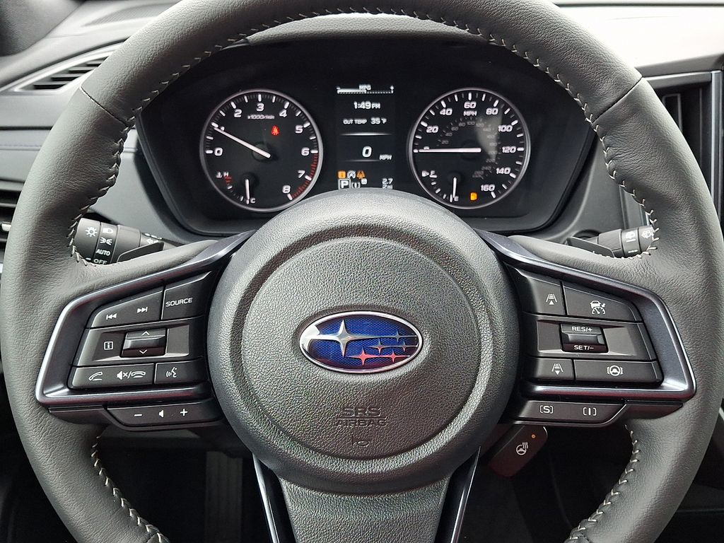 4-Wheel Disc Brakes, 6 Speakers, ABS brakes, Air Conditioning, Alloy wheels, AM/FM radio: SiriusXM with 360L, Anti-whiplash front head restraints, Auto High-beam Headlights, Automatic temperature control, Brake assist, Bumpers: body-color, Driver door bin, Driver vanity mirror, Dual front impact airbags, Dual front side impact airbags, Electronic Stability Control, Emergency communication system: MySubaru Companion (5-years free), Exterior Parking Camera Rear, Four wheel independent suspension, Front anti-roll bar, Front Bucket Seats, Front Center Armrest, Front dual zone A/C, Front fog lights, Front reading lights, Fully automatic headlights, Heated door mirrors, Heated Front Bucket Seats, Heated front seats, Heated steering wheel, Illuminated entry, Knee airbag, Leather steering wheel, Low tire pressure warning, Occupant sensing airbag, Outside temperature display, Overhead airbag, Overhead console, Panic alarm, Passenger door bin, Passenger vanity mirror, Perforated Leather-Trimmed Upholstery, Power door mirrors, Power driver seat, Power Liftgate, Power moonroof: Panoramic, Power passenger seat, Power steering, Power windows, Radio data system, Radio: Subaru 11.6" Multimedia Plus System, Rain sensing wipers, Rear anti-roll bar, Rear seat center armrest, Rear window defroster, Rear window wiper, Remote keyless entry, Security system, Speed control, Speed-sensing steering, Split folding rear seat, Spoiler, Steering wheel mounted audio controls, Tachometer, Telescoping steering wheel, Tilt steering wheel, Traction control, Trip computer, Turn signal indicator mirrors, Variably intermittent wipers, Wheels: 18" x 7.0 J Dark Metallic Aluminum-Alloy.