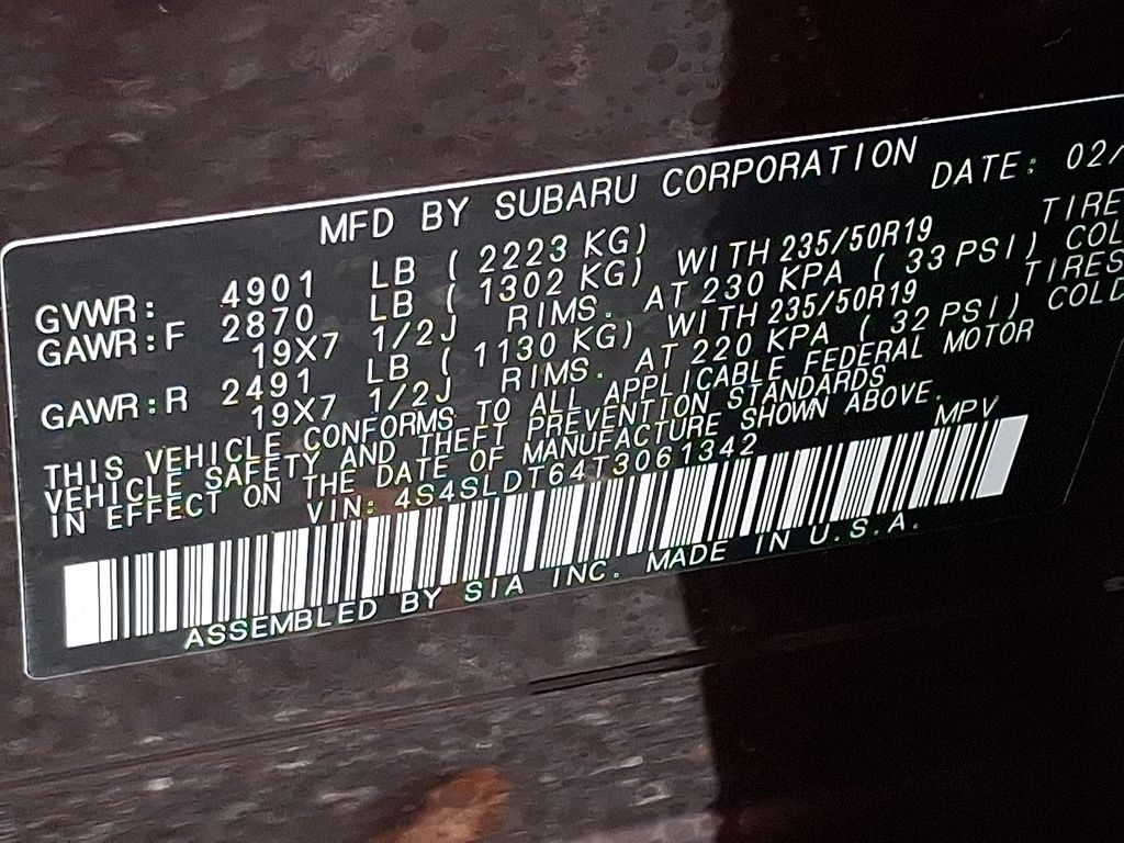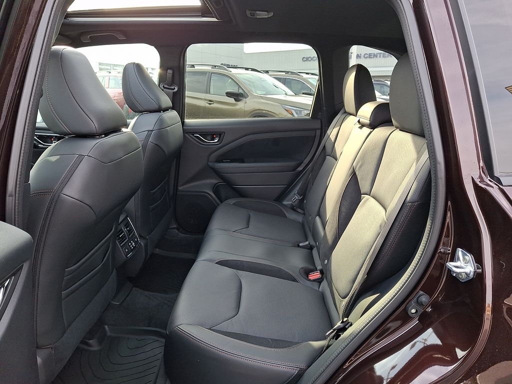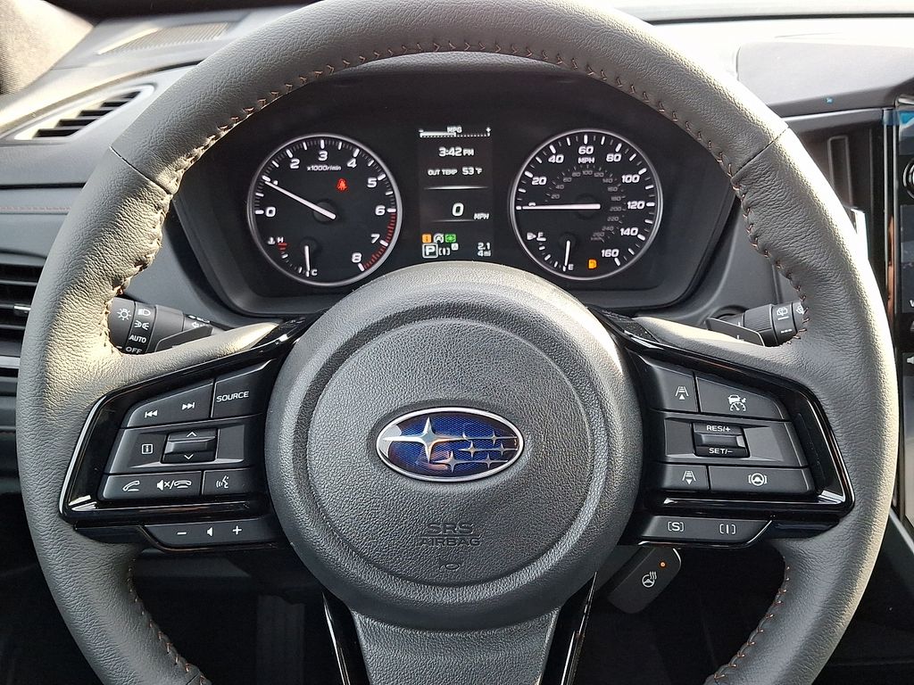 11 Speakers, 4-Wheel Disc Brakes, ABS brakes, Air Conditioning, Alloy wheels, AM/FM radio: SiriusXM with 360L, Anti-whiplash front head restraints, Auto High-beam Headlights, Automatic temperature control, Brake assist, Bumpers: body-color, Driver door bin, Driver vanity mirror, Dual front impact airbags, Dual front side impact airbags, Electronic Stability Control, Emergency communication system: MySubaru Companion (5-years free), Exterior Parking Camera Rear, Four wheel independent suspension, Front anti-roll bar, Front Bucket Seats, Front Center Armrest, Front dual zone A/C, Front fog lights, Front reading lights, Fully automatic headlights, harman/kardon® Speakers, Heads-Up Display, Heated and Ventilated Front Bucket Seats, Heated door mirrors, Heated front seats, Heated rear seats, Heated steering wheel, HVAC memory, Illuminated entry, Knee airbag, Leather Shift Knob, Leather steering wheel, Low tire pressure warning, Memory seat, Navigation System, Occupant sensing airbag, Outside temperature display, Overhead airbag, Overhead console, Panic alarm, Passenger door bin, Passenger vanity mirror, Perforated Leather-Trimmed Upholstery, Power door mirrors, Power driver seat, Power Liftgate, Power moonroof: Panoramic, Power passenger seat, Power steering, Power windows, Radio data system, Radio: Subaru 11.6" Multimedia Navigation System, Rain sensing wipers, Rear anti-roll bar, Rear seat center armrest, Rear window defroster, Rear window wiper, Remote keyless entry, Security system, Speed control, Speed-sensing steering, Split folding rear seat, Spoiler, Steering wheel mounted audio controls, Tachometer, Telescoping steering wheel, Tilt steering wheel, Traction control, Trip computer, Turn signal indicator mirrors, Variably intermittent wipers, Ventilated front seats, Wheels: 19" x 7.5 J Dark Gray Aluminum-Alloy.