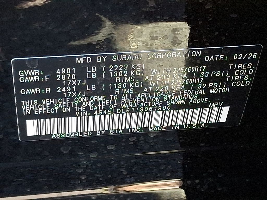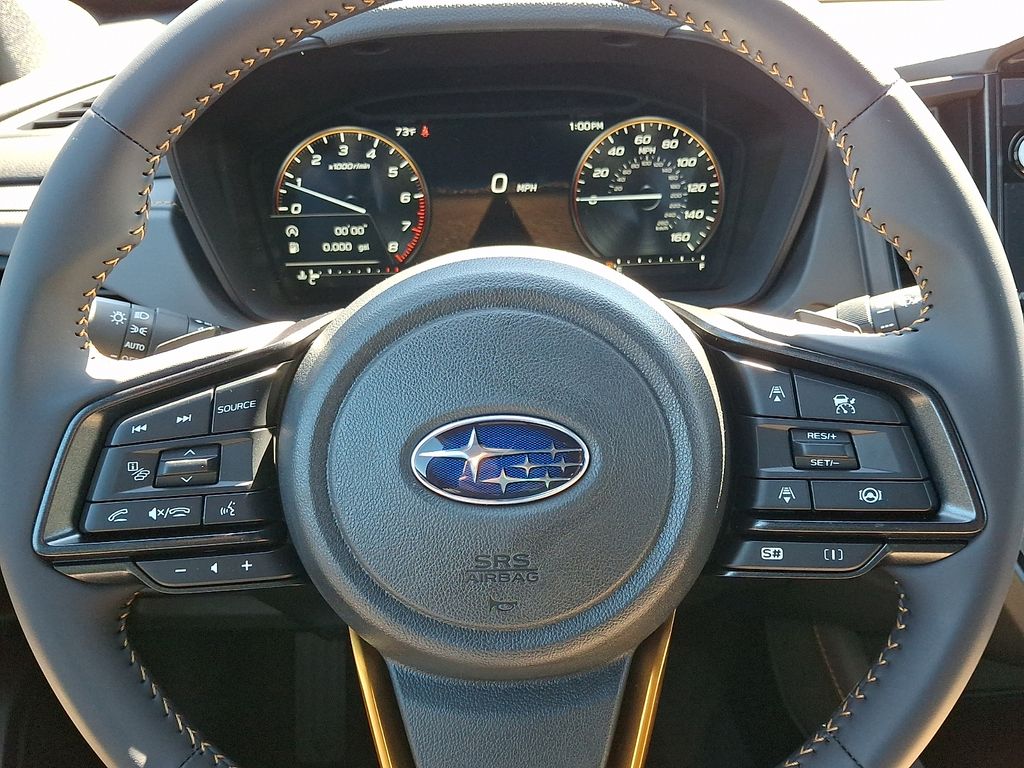 4-Wheel Disc Brakes, 6 Speakers, ABS brakes, Air Conditioning, Alloy wheels, AM/FM radio: SiriusXM with 360L, Anti-whiplash front head restraints, Auto High-beam Headlights, Automatic temperature control, Brake assist, Bumpers: body-color, Driver door bin, Driver vanity mirror, Dual front impact airbags, Dual front side impact airbags, Electronic Stability Control, Emergency communication system: MySubaru Companion (5-years free), Exterior Parking Camera Rear, Four wheel independent suspension, Front anti-roll bar, Front Bucket Seats, Front Center Armrest, Front dual zone A/C, Front fog lights, Front reading lights, Fully automatic headlights, Heated door mirrors, Heated Front Bucket Seats, Heated front seats, Illuminated entry, Knee airbag, Low tire pressure warning, Occupant sensing airbag, Outside temperature display, Overhead airbag, Overhead console, Panic alarm, Passenger door bin, Passenger vanity mirror, Power door mirrors, Power driver seat, Power moonroof: Panoramic, Power steering, Power windows, Radio data system, Radio: Subaru 11.6" Multimedia Plus System, Rain sensing wipers, Rear anti-roll bar, Rear seat center armrest, Rear window defroster, Rear window wiper, Remote keyless entry, Security system, Speed control, Speed-sensing steering, Split folding rear seat, Spoiler, Steering wheel mounted audio controls, Tachometer, Telescoping steering wheel, Textured StarTex Upholstery, Tilt steering wheel, Traction control, Trip computer, Turn signal indicator mirrors, Variably intermittent wipers, Wheels: 17" x 7.0 J Matte Black Finish Aluminum-Alloy.