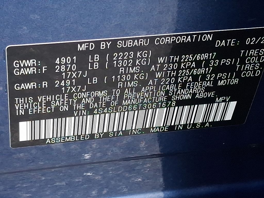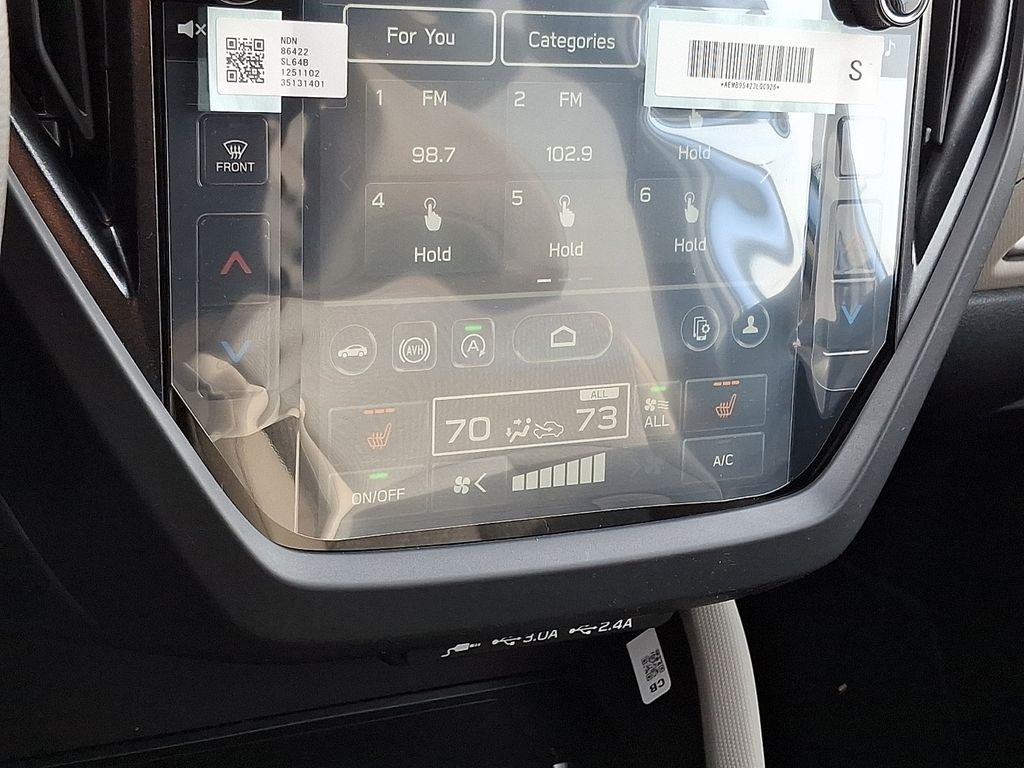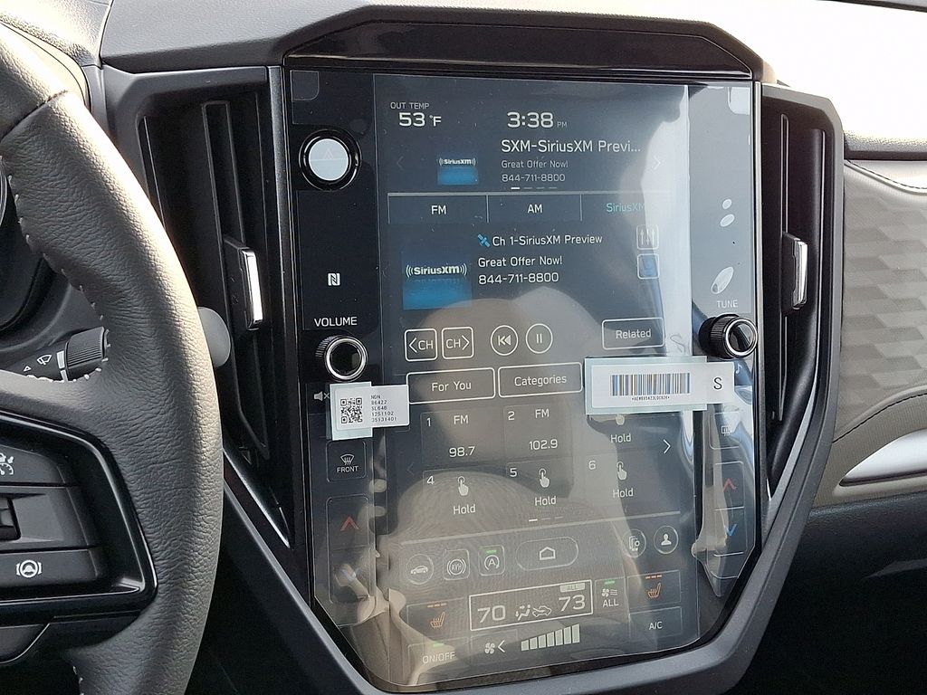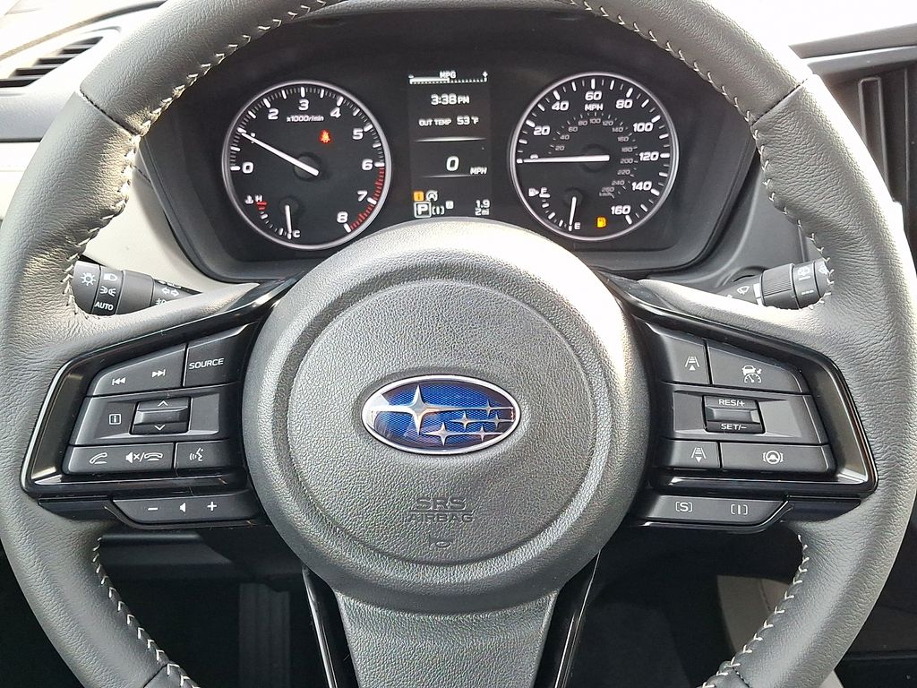 4-Wheel Disc Brakes, 6 Speakers, ABS brakes, Air Conditioning, Alloy wheels, AM/FM radio: SiriusXM with 360L, Anti-whiplash front head restraints, Auto High-beam Headlights, Automatic temperature control, Brake assist, Bumpers: body-color, Driver door bin, Driver vanity mirror, Dual front impact airbags, Dual front side impact airbags, Electronic Stability Control, Emergency communication system: MySubaru Companion (5-years free), Exterior Parking Camera Rear, Four wheel independent suspension, Front anti-roll bar, Front Bucket Seats, Front Center Armrest, Front dual zone A/C, Front fog lights, Front reading lights, Fully automatic headlights, Heated door mirrors, Heated Front Bucket Seats, Heated front seats, Illuminated entry, Knee airbag, Leather steering wheel, Low tire pressure warning, Occupant sensing airbag, Outside temperature display, Overhead airbag, Overhead console, Panic alarm, Passenger door bin, Passenger vanity mirror, Power door mirrors, Power driver seat, Power moonroof: Panoramic, Power steering, Power windows, Premium Textured Cloth Upholstery, Radio data system, Radio: Subaru 11.6" Multimedia Plus System, Rear anti-roll bar, Rear seat center armrest, Rear window defroster, Rear window wiper, Remote keyless entry, Security system, Speed control, Speed-sensing steering, Split folding rear seat, Spoiler, Steering wheel mounted audio controls, Tachometer, Telescoping steering wheel, Tilt steering wheel, Traction control, Trip computer, Variably intermittent wipers, Wheels: 17" x 7.0 J Dark Metallic Aluminum-Alloy.