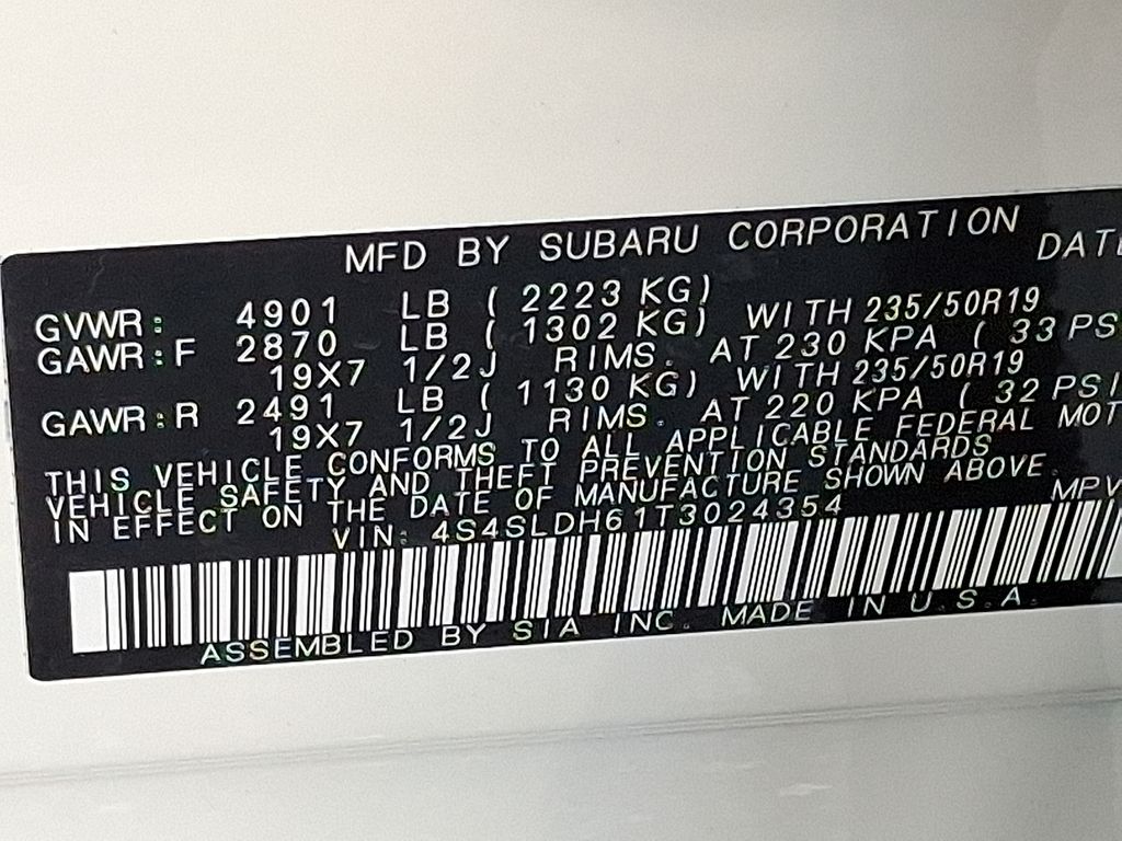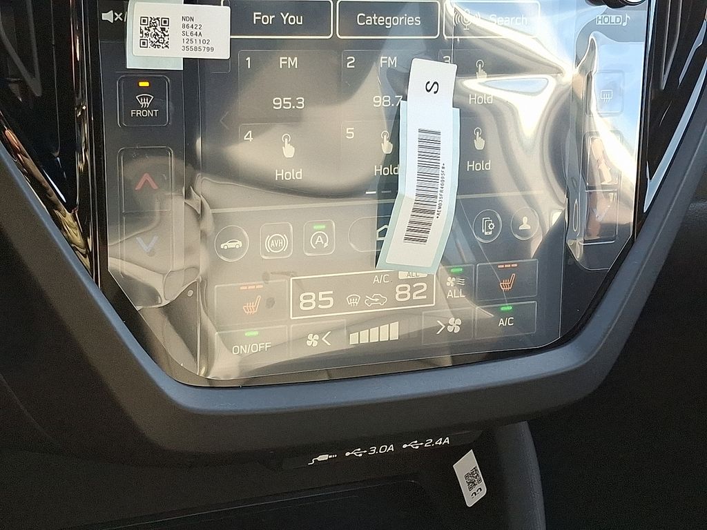 4-Wheel Disc Brakes, 6 Speakers, ABS brakes, Air Conditioning, Alloy wheels, AM/FM radio: SiriusXM with 360L, Anti-whiplash front head restraints, Auto High-beam Headlights, Auto-Dimming Mirror with Compass and HomeLink, Automatic temperature control, Brake assist, Bumpers: body-color, Driver door bin, Driver vanity mirror, Dual front impact airbags, Dual front side impact airbags, Electronic Stability Control, Emergency communication system: MySubaru Companion (5-years free), Exterior Parking Camera Rear, Four wheel independent suspension, Front anti-roll bar, Front Bucket Seats, Front Center Armrest, Front dual zone A/C, Front fog lights, Front reading lights, Fully automatic headlights, Harman/Kardon Speaker System, Harman/Kardon Speaker System and Power Rear Gate and Reverse Automatic Braking, Heated door mirrors, Heated Front Bucket Seats, Heated front seats, Illuminated entry, Knee airbag, Leather steering wheel, LED Upgrade, Low tire pressure warning, Occupant sensing airbag, Outside temperature display, Overhead airbag, Overhead console, Panic alarm, Passenger door bin, Passenger vanity mirror, Power door mirrors, Power driver seat, Power moonroof: Panoramic, Power Rear Gate, Power steering, Power windows, Radio data system, Radio: Subaru 11.6" Multimedia Plus System, Rear anti-roll bar, Rear seat center armrest, Rear Seatback Protector, Rear window defroster, Rear window wiper, Remote keyless entry, Reverse Automatic Braking (RAB) System, Security system, SI-Drive Dual-Mode Engine Performance Management, Speed control, Speed-sensing steering, Splash Guards, Split folding rear seat, Spoiler, Sport StarTex Upholstery, Steering wheel mounted audio controls, Tachometer, Telescoping steering wheel, Tilt steering wheel, Traction control, Trip computer, Turn signal indicator mirrors, Variably intermittent wipers, Wheels: 19" x 7.5 J Bronze Finish Aluminum-Alloy.