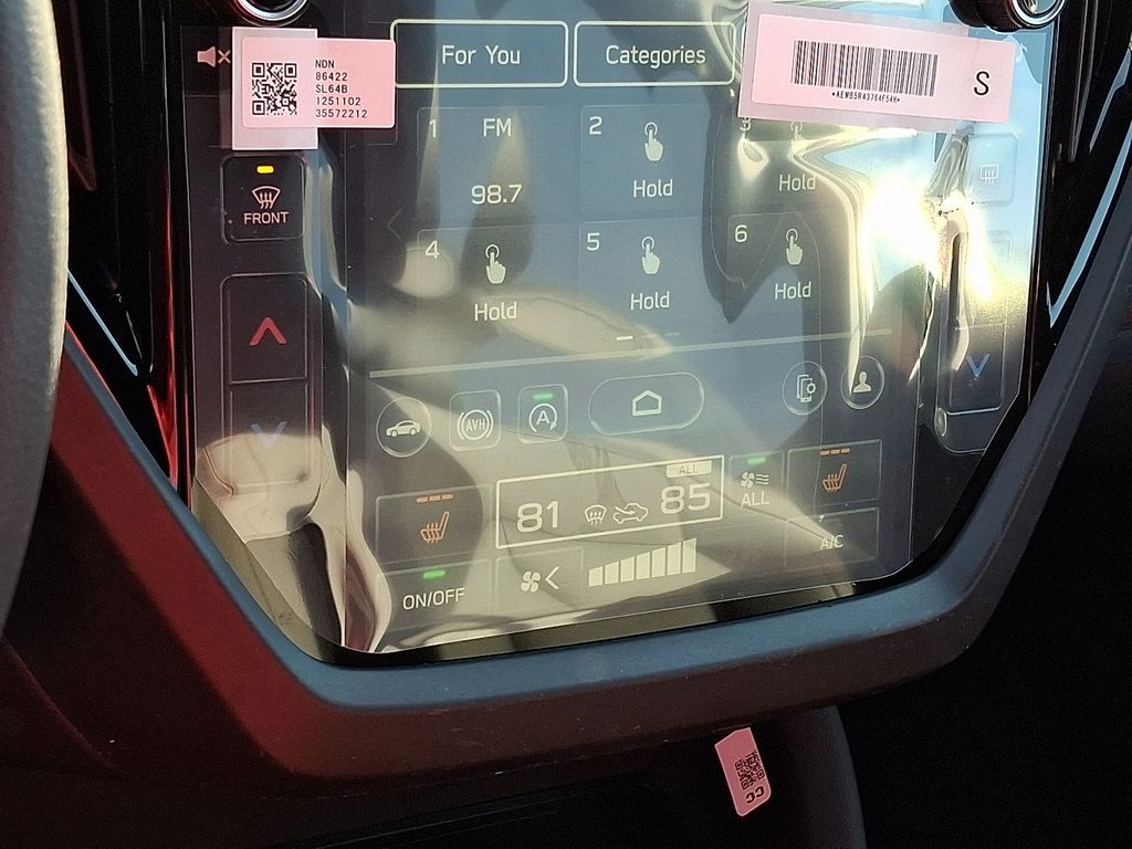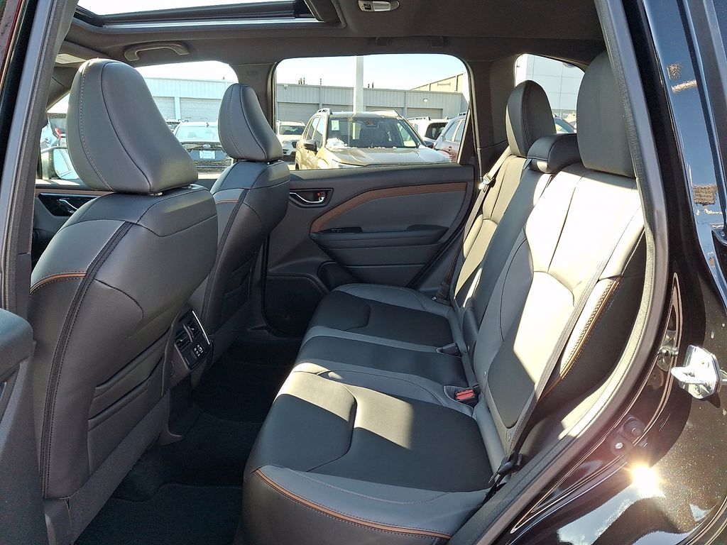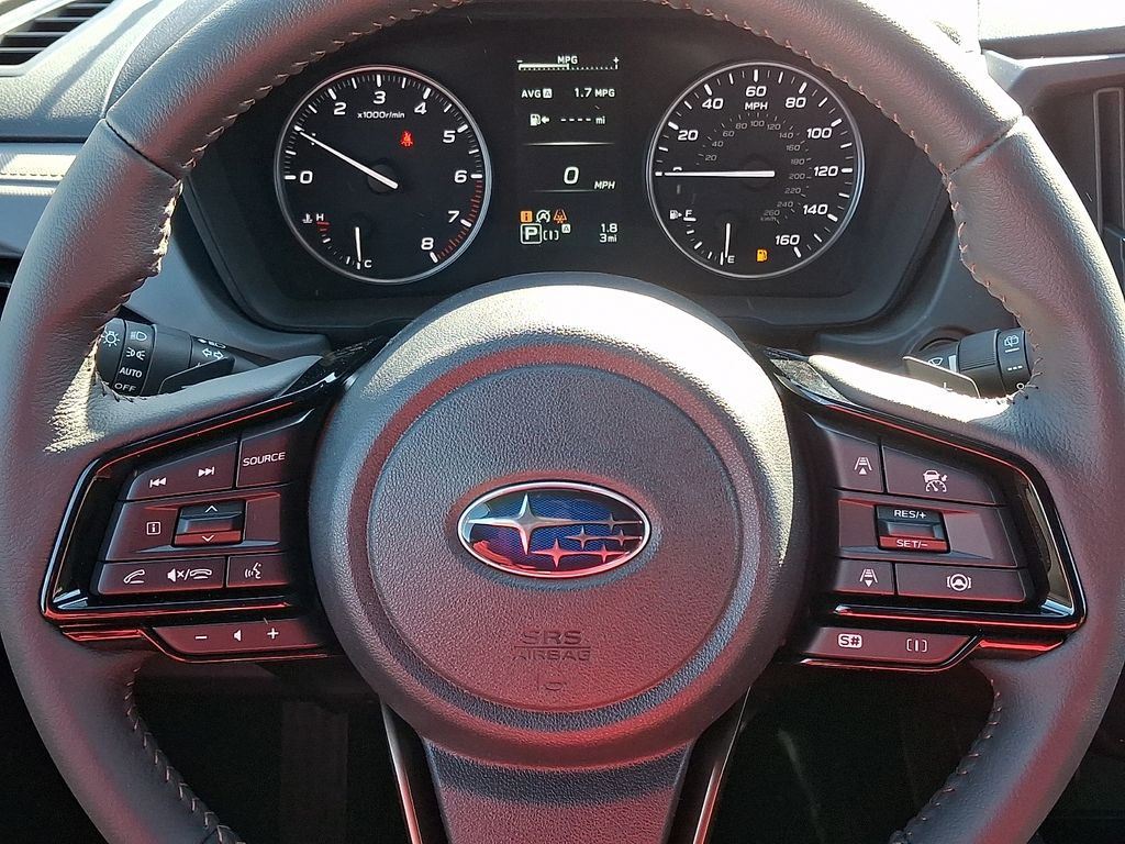 4-Wheel Disc Brakes, 6 Speakers, ABS brakes, Air Conditioning, Alloy wheels, AM/FM radio: SiriusXM with 360L, Anti-whiplash front head restraints, Auto High-beam Headlights, Automatic temperature control, Brake assist, Bumpers: body-color, Driver door bin, Driver vanity mirror, Dual front impact airbags, Dual front side impact airbags, Electronic Stability Control, Emergency communication system: MySubaru Companion (5-years free), Exterior Parking Camera Rear, Four wheel independent suspension, Front anti-roll bar, Front Bucket Seats, Front Center Armrest, Front dual zone A/C, Front fog lights, Front reading lights, Fully automatic headlights, Heated door mirrors, Heated Front Bucket Seats, Heated front seats, Illuminated entry, Knee airbag, Leather steering wheel, Low tire pressure warning, Occupant sensing airbag, Outside temperature display, Overhead airbag, Overhead console, Panic alarm, Passenger door bin, Passenger vanity mirror, Power door mirrors, Power driver seat, Power moonroof: Panoramic, Power steering, Power windows, Radio data system, Radio: Subaru 11.6" Multimedia Plus System, Rear anti-roll bar, Rear seat center armrest, Rear window defroster, Rear window wiper, Remote keyless entry, Security system, Speed control, Speed-sensing steering, Split folding rear seat, Spoiler, Sport StarTex Upholstery, Steering wheel mounted audio controls, Tachometer, Telescoping steering wheel, Tilt steering wheel, Traction control, Trip computer, Turn signal indicator mirrors, Variably intermittent wipers, Wheels: 19" x 7.5 J Bronze Finish Aluminum-Alloy.