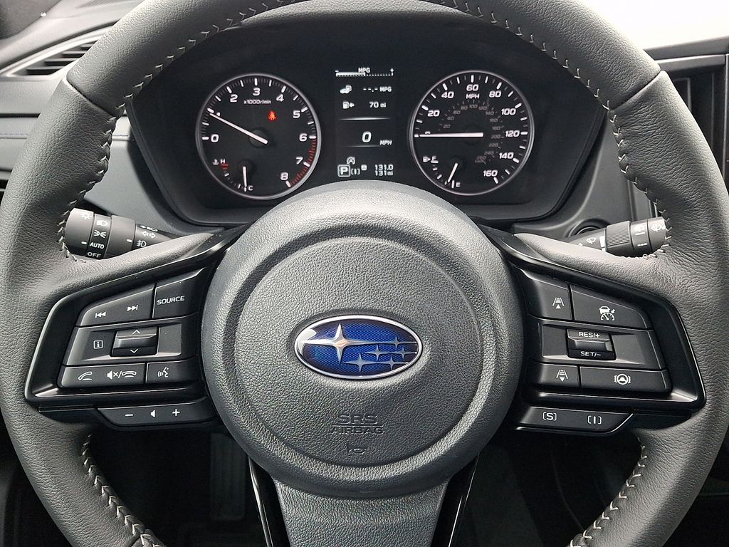 4-Wheel Disc Brakes, 6 Speakers, ABS brakes, Air Conditioning, Alloy wheels, AM/FM radio: SiriusXM with 360L, Anti-whiplash front head restraints, Auto High-beam Headlights, Automatic temperature control, Brake assist, Bumpers: body-color, Driver door bin, Driver vanity mirror, Dual front impact airbags, Dual front side impact airbags, Electronic Stability Control, Emergency communication system: MySubaru Companion (5-years free), Exterior Parking Camera Rear, Four wheel independent suspension, Front anti-roll bar, Front Bucket Seats, Front Center Armrest, Front dual zone A/C, Front fog lights, Front reading lights, Fully automatic headlights, Heated door mirrors, Heated Front Bucket Seats, Heated front seats, Illuminated entry, Knee airbag, Leather steering wheel, Low tire pressure warning, Occupant sensing airbag, Outside temperature display, Overhead airbag, Overhead console, Panic alarm, Passenger door bin, Passenger vanity mirror, Power door mirrors, Power driver seat, Power moonroof: Panoramic, Power steering, Power windows, Premium Textured Cloth Upholstery, Radio data system, Radio: Subaru 11.6" Multimedia Plus System, Rear anti-roll bar, Rear seat center armrest, Rear window defroster, Rear window wiper, Remote keyless entry, Security system, Speed control, Speed-sensing steering, Split folding rear seat, Spoiler, Steering wheel mounted audio controls, Tachometer, Telescoping steering wheel, Tilt steering wheel, Traction control, Trip computer, Variably intermittent wipers, Wheels: 17" x 7.0 J Dark Metallic Aluminum-Alloy.