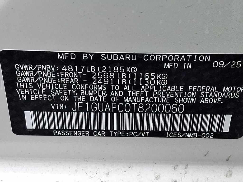 4-Wheel Disc Brakes, 6 Speakers, ABS brakes, Air Conditioning, All-Weather Floor Liners, Alloy wheels, AM/FM radio: SiriusXM, Anti-whiplash front head restraints, Auto High-beam Headlights, Auto-Dimming Mirror with Compass and HomeLink, Automatic temperature control, Brake assist, Bumpers: body-color, Cargo Net, Driver door bin, Driver vanity mirror, Dual front impact airbags, Dual front side impact airbags, Electronic Stability Control, Emergency communication system: MySubaru Companion (5-years free), Exterior Parking Camera Rear, Four wheel independent suspension, Front anti-roll bar, Front Bucket Seats, Front Center Armrest, Front dual zone A/C, Front fog lights, Front reading lights, Fully automatic headlights, Illuminated entry, Knee airbag, Low tire pressure warning, Occupant sensing airbag, Outside temperature display, Overhead airbag, Overhead console, Panic alarm, Passenger door bin, Passenger vanity mirror, Power door mirrors, Power steering, Power windows, Radio data system, Radio: Subaru 11.6" Multimedia Plus System, Rear anti-roll bar, Rear Bumper Applique, Rear seat center armrest, Rear side impact airbag, Rear window defroster, Rear window wiper, Remote keyless entry, Security system, Speed control, Speed-sensing steering, Split folding rear seat, Spoiler, Sport Cloth Upholstery, Standard Model, Steering wheel mounted audio controls, Tachometer, Telescoping steering wheel, Tilt steering wheel, Traction control, Trip computer, Turn signal indicator mirrors, Variably intermittent wipers, Wheels: 18" x 7.5" Jdark Gray Aluminum-Alloy.