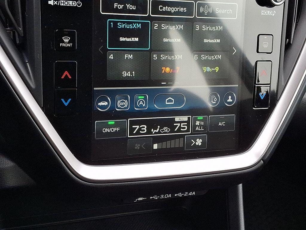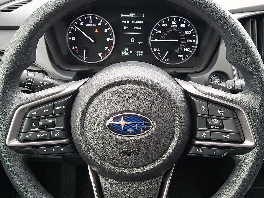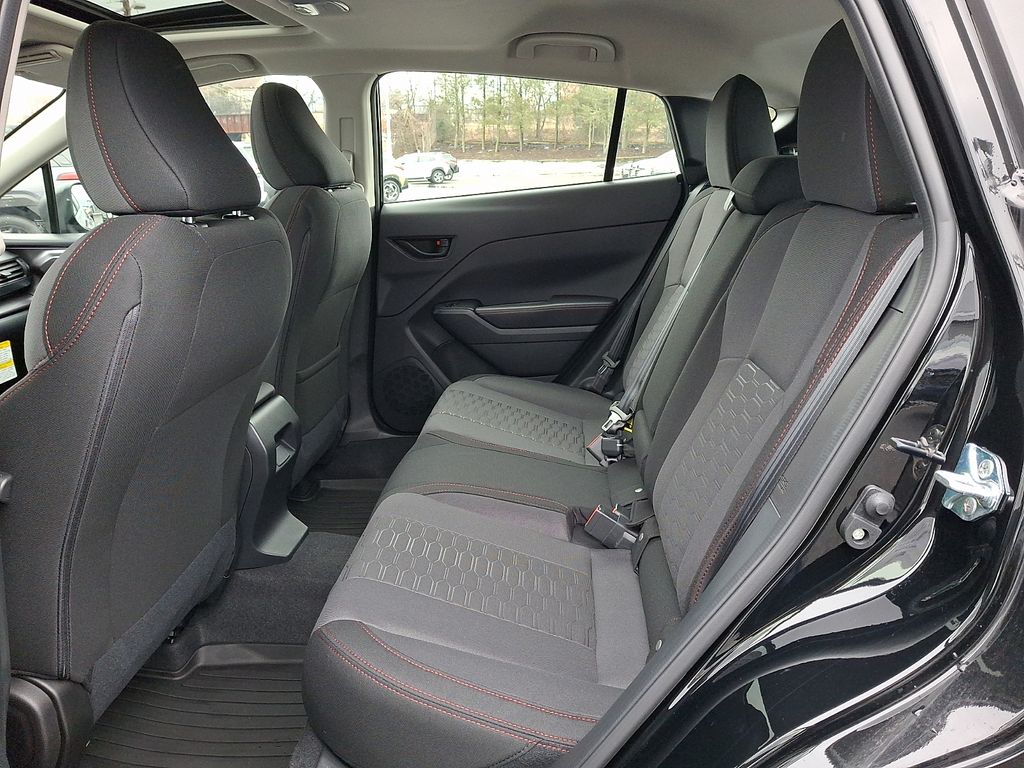 4-Wheel Disc Brakes, 6 Speakers, ABS brakes, Air Conditioning, All Weather Package, All-Weather Floor Liners, Alloy wheels, AM/FM radio: SiriusXM, Anti-whiplash front head restraints, Auto High-beam Headlights, Auto-Dimming Mirror with Compass and HomeLink, Automatic Emergency Steering, Automatic temperature control, Blind Spot Detection (BSD), Blind Spot Detection and Rear Cross Traffic Alert and All Weather Package and Power Moonroof, Brake assist, Bumpers: body-color, Cargo Net, Driver door bin, Driver vanity mirror, Dual front impact airbags, Dual front side impact airbags, Dual-Mode Heated Front Seats, Electronic Stability Control, Emergency communication system: MySubaru Companion (5-years free), Emergency Lane Keep Assist, Exterior Parking Camera Rear, Four wheel independent suspension, Front anti-roll bar, Front Bucket Seats, Front Center Armrest, Front dual zone A/C, Front fog lights, Front reading lights, Fully automatic headlights, Heated Exterior Power Mirrors, Illuminated entry, Knee airbag, Low tire pressure warning, Occupant sensing airbag, Outside temperature display, Overhead airbag, Overhead console, Panic alarm, Passenger door bin, Passenger vanity mirror, Power door mirrors, Power Moonroof, Power steering, Power windows, Radio data system, Radio: Subaru 11.6" Multimedia Plus System, Rear anti-roll bar, Rear Bumper Applique, Rear Cross-Traffic Alert (RCTA) System, Rear seat center armrest, Rear side impact airbag, Rear window defroster, Rear window wiper, Remote keyless entry, Security system, Speed control, Speed-sensing steering, Split folding rear seat, Spoiler, Sport Cloth Upholstery, Steering wheel mounted audio controls, Sun Visors with Vanity Mirror and Lights, Tachometer, Telescoping steering wheel, Tilt steering wheel, Traction control, Trip computer, Turn signal indicator mirrors, Variably intermittent wipers, Wheels: 18" x 7.5" Jdark Gray Aluminum-Alloy, Windshield Wiper De-Icer.