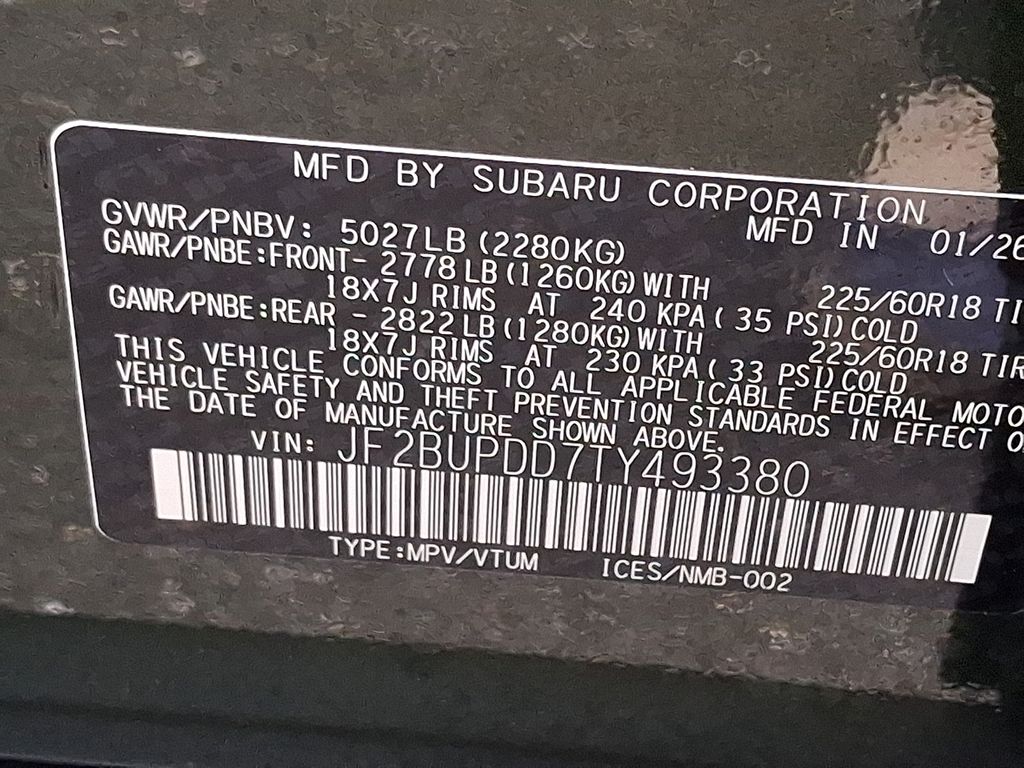 12 Speakers, 4-Wheel Disc Brakes, ABS brakes, Air Conditioning, Alloy wheels, AM/FM radio: SiriusXM with 360L, Anti-whiplash front head restraints, Auto High-beam Headlights, Automatic temperature control, Blind Spot Warning, Brake assist, Bumpers: body-color, Compass, Driver door bin, Driver vanity mirror, Dual front impact airbags, Dual front side impact airbags, Electronic Stability Control, Emergency communication system: MySubaru Companion (5-years free), Exterior Parking Camera Rear, Four wheel independent suspension, Front anti-roll bar, Front Bucket Seats, Front Center Armrest w/Storage, Front dual zone A/C, Front fog lights, Front reading lights, Fully automatic headlights, harman/kardon® Speakers, Heated door mirrors, Heated Front Bucket Seats, Heated front seats, Heated rear seats, Heated steering wheel, HVAC memory, Illuminated entry, Knee airbag, Leather steering wheel, Low tire pressure warning, Memory seat, Navigation system: MySubaru Navigator (1-year trial), Occupant sensing airbag, Outside temperature display, Overhead airbag, Overhead console, Panic alarm, Passenger door bin, Passenger vanity mirror, Perforated Leather-Trimmed Upholstery, Power door mirrors, Power driver seat, Power Liftgate, Power moonroof, Power passenger seat, Power steering, Power windows, Radio: Subaru 12.1" Multimedia System with Navigation, Rain sensing wipers, Rear anti-roll bar, Rear seat center armrest, Rear window defroster, Rear window wiper, Remote keyless entry, Security system, Speed control, Speed-sensing steering, Split folding rear seat, Spoiler, Steering wheel mounted audio controls, Tachometer, Telescoping steering wheel, Tilt steering wheel, Traction control, Trip computer, Turn signal indicator mirrors, Variably intermittent wipers, Wheels: 18" x 7J Matte Black Finish Aluminum-Alloy.
