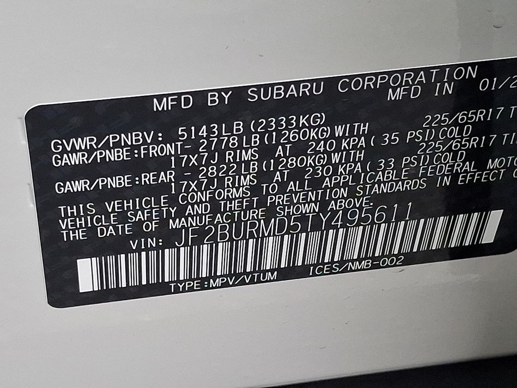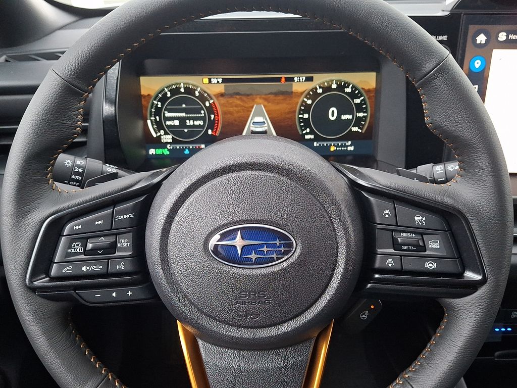 12 Speakers, 4-Wheel Disc Brakes, ABS brakes, Air Conditioning, Alloy wheels, AM/FM radio: SiriusXM with 360L, Anti-whiplash front head restraints, Auto High-beam Headlights, Automatic temperature control, Blind Spot Warning, Brake assist, Bumpers: body-color, Driver door bin, Driver vanity mirror, Dual front impact airbags, Dual front side impact airbags, Electronic Stability Control, Emergency communication system: MySubaru Companion (5-years free), Exterior Parking Camera Rear, Four wheel independent suspension, Front anti-roll bar, Front Bucket Seats, Front Center Armrest w/Storage, Front dual zone A/C, Front fog lights, Front reading lights, Fully automatic headlights, harman/kardon® Speakers, Heated door mirrors, Heated Front Bucket Seats, Heated front seats, Heated rear seats, Heated steering wheel, HVAC memory, Illuminated entry, Knee airbag, Leather Shift Knob, Leather steering wheel, Low tire pressure warning, Occupant sensing airbag, Outside temperature display, Overhead airbag, Overhead console, Panic alarm, Passenger door bin, Passenger vanity mirror, Power door mirrors, Power driver seat, Power Liftgate, Power steering, Power windows, Radio: Subaru 12.1" Multimedia System, Rain sensing wipers, Rear anti-roll bar, Rear seat center armrest, Rear window defroster, Rear window wiper, Remote keyless entry, Security system, Speed control, Speed-sensing steering, Split folding rear seat, Spoiler, StarTex-Trimmed Upholstery, Steering wheel mounted audio controls, Tachometer, Telescoping steering wheel, Tilt steering wheel, Traction control, Trip computer, Turn signal indicator mirrors, Variably intermittent wipers, Wheels: 17" x 7J Matte Black Finish Aluminum-Alloy.
