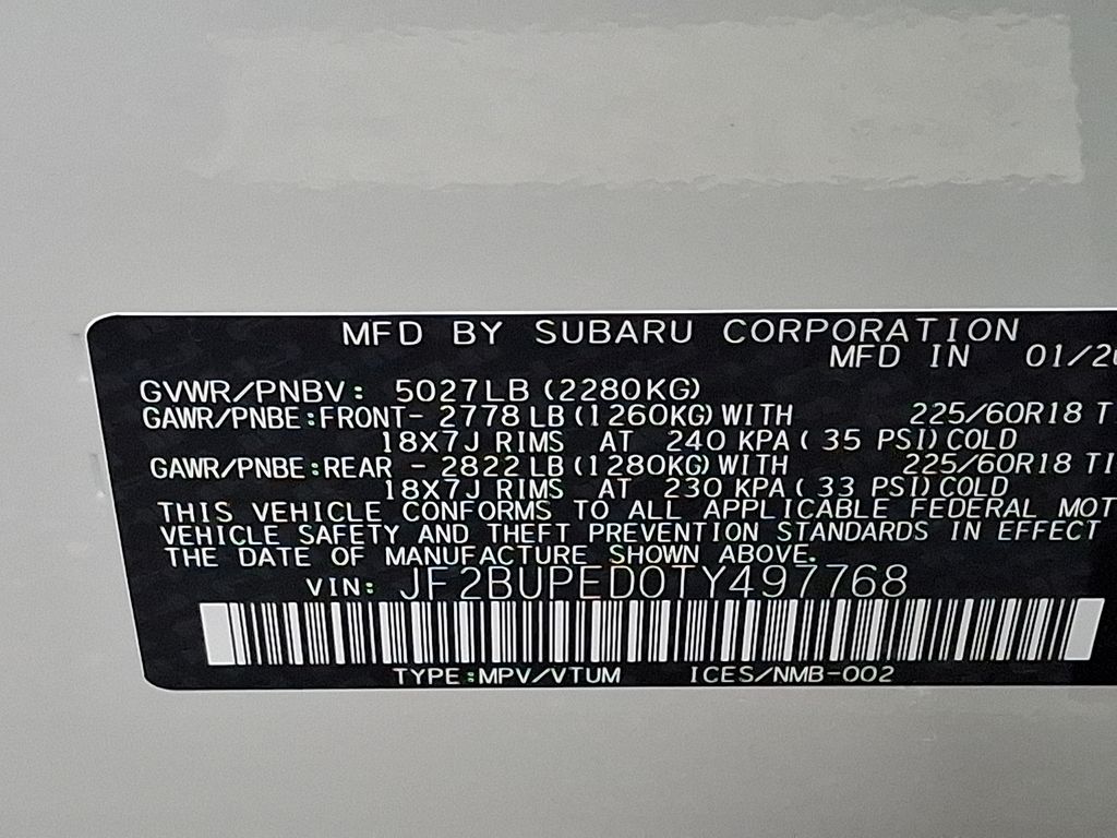12 Speakers, 4-Wheel Disc Brakes, ABS brakes, Air Conditioning, Alloy wheels, AM/FM radio: SiriusXM with 360L, Anti-whiplash front head restraints, Auto High-beam Headlights, Auto-dimming Rear-View mirror, Automatic temperature control, Blind Spot Warning, Brake assist, Bumpers: body-color, Compass, Driver door bin, Driver vanity mirror, Dual front impact airbags, Dual front side impact airbags, Electronic Stability Control, Emergency communication system: MySubaru Companion (5-years free), Exterior Parking Camera Rear, Four wheel independent suspension, Front anti-roll bar, Front Bucket Seats, Front Center Armrest w/Storage, Front dual zone A/C, Front fog lights, Front reading lights, Fully automatic headlights, Garage door transmitter: HomeLink, harman/kardon® Speakers, Heated and Ventilated Front Bucket Seats, Heated door mirrors, Heated front seats, Heated rear seats, Heated steering wheel, HVAC memory, Illuminated entry, Knee airbag, Leather steering wheel, Low tire pressure warning, Memory seat, Nappa Leather-Trimmed Perforated Upholstery, Navigation system: MySubaru Navigator (1-year trial), Occupant sensing airbag, Outside temperature display, Overhead airbag, Overhead console, Panic alarm, Passenger door bin, Passenger vanity mirror, Power door mirrors, Power driver seat, Power Liftgate, Power moonroof, Power passenger seat, Power steering, Power windows, Radio: Subaru 12.1" Multimedia System with Navigation, Rain sensing wipers, Rear anti-roll bar, Rear seat center armrest, Rear window defroster, Rear window wiper, Remote keyless entry, Security system, Speed control, Speed-sensing steering, Split folding rear seat, Spoiler, Steering wheel mounted audio controls, Tachometer, Telescoping steering wheel, Tilt steering wheel, Traction control, Trip computer, Turn signal indicator mirrors, Variably intermittent wipers, Ventilated front seats, Wheels: 18" x 7J Black Aluminum-Alloy.