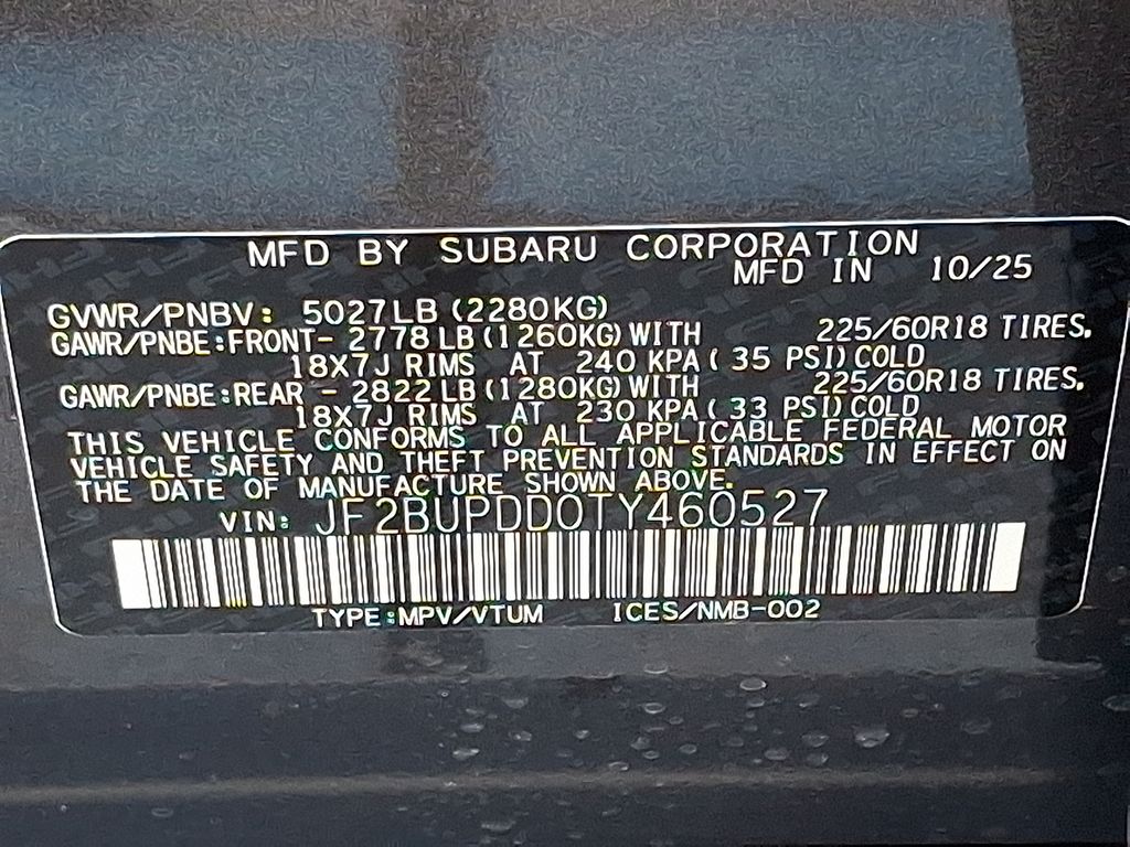 12 Speakers, 4-Wheel Disc Brakes, ABS brakes, Air Conditioning, All-Weather Floor Liners, Alloy wheels, AM/FM radio: SiriusXM with 360L, Anti-whiplash front head restraints, Auto High-beam Headlights, Auto-Dimming Exterior Mirror with Approach Light, Auto-Dimming Mirror with Compass and HomeLink, Automatic temperature control, Blind Spot Warning, Brake assist, Bumpers: body-color, Cargo Net, Compass, Driver door bin, Driver vanity mirror, Dual front impact airbags, Dual front side impact airbags, Electronic Stability Control, Emergency communication system: MySubaru Companion (5-years free), Exterior Parking Camera Rear, Four wheel independent suspension, Front anti-roll bar, Front Bucket Seats, Front Center Armrest w/Storage, Front dual zone A/C, Front fog lights, Front reading lights, Fully automatic headlights, harman/kardon® Speakers, Heated door mirrors, Heated Front Bucket Seats, Heated front seats, Heated rear seats, Heated steering wheel, HVAC memory, Illuminated entry, Knee airbag, Leather steering wheel, Low tire pressure warning, Memory seat, Navigation system: MySubaru Navigator (1-year trial), Occupant sensing airbag, Outside temperature display, Overhead airbag, Overhead console, Panic alarm, Passenger door bin, Passenger vanity mirror, Perforated Leather-Trimmed Upholstery, Power door mirrors, Power driver seat, Power Liftgate, Power moonroof, Power passenger seat, Power steering, Power windows, Premium/Limited Plus Package, Radio: Subaru 12.1" Multimedia System with Navigation, Rain sensing wipers, Rear anti-roll bar, Rear Bumper Cover, Rear seat center armrest, Rear window defroster, Rear window wiper, Remote keyless entry, Security system, Speed control, Speed-sensing steering, Split folding rear seat, Spoiler, Standard Model, Steering wheel mounted audio controls, Tachometer, Telescoping steering wheel, Tilt steering wheel, Traction control, Trip computer, Turn signal indicator mirrors, Variably intermittent wipers, Wheels: 18" x 7J Matte Black Finish Aluminum-Alloy.